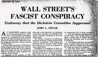 The bankers didn’t limit themselves to financial sabotage during this time, but also attempted a fascist military coup which was exposed by Maj. Gen. Smedley Butler in his congressional testimony of November 20, 1934. Butler had testified that the plan was begun in the Summer of 1933 and organized by Wall Street financiers who tried to use him as a puppet dictator leading 500 000 American Legion members to storm the White House. As Butler spoke, those same financiers had just set up an anti-New Deal organization called the American Liberty League which fought to keep America out of the war in defense of an Anglo-Nazi fascist global government which they wished to partner with.