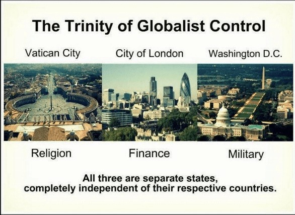 This other Crown is comprised of a committee of 12 banks headed by the Bank of England (House of Rothschild). They rule the world from the 677-acre, independent sovereign state know as The City of London, or simply ‘The City.’