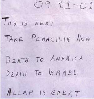 (33) Although the FBI now admits that the 2001 anthrax attacks were carried out by one or more U.S. government scientists, a senior FBI official says that the FBI was actually told to blame the Anthrax attacks on Al Qaeda by White House officials (remember what the anthrax letters looked like). Government officials also confirm that the white House tried to link the anthrax to Iraq as a justification for regime change in that country.