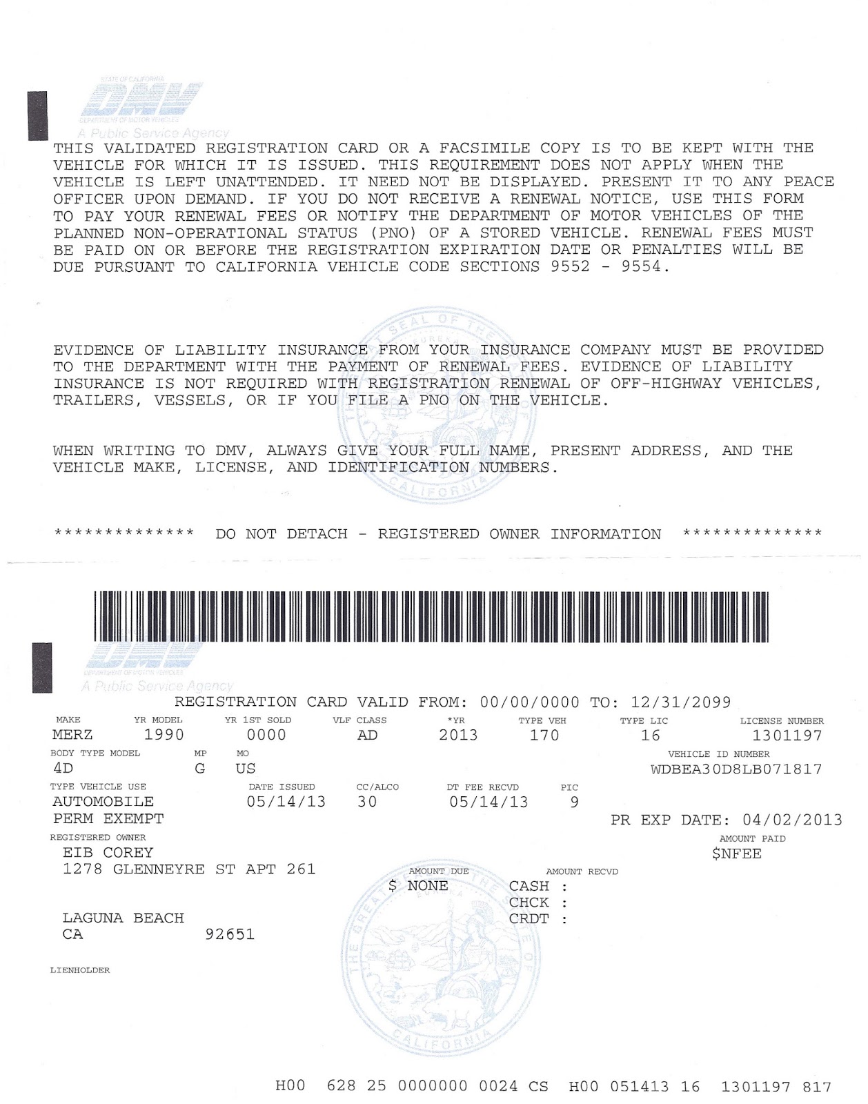 Attached are new genuine CA Exempt license plates. Issued on 5-15-2013 from the California Costa Mesa DMV. Total cost $0, expires December 2099.