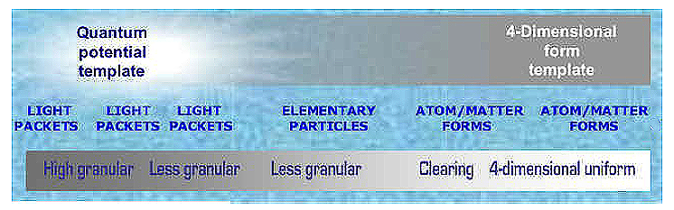 5. The physical result of a MANIFEST PRODUCTION OBSERVERSHIP (MPO) event is a record of the interaction of two coherent patterns of coherent radiant energetics, in the form of microscopic pattern of interference fringes. It is an energetic registration of the interference pattern formed by two energetic patterns of coherent nature, one of which is coherent light. One pattern (the reference pattern) goes straight from the light source and the other is scattered onto the template of the target object in the mind of the MPO inductor (or the human vector-intention). The 3-dimensional product is produced by the interference pattern of the two working patterns and is processed in such way that when the thought-template is materialized appropriately a three dimensional image is produced.