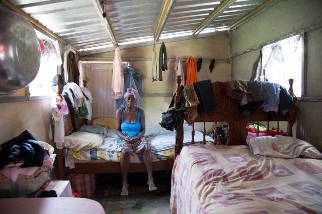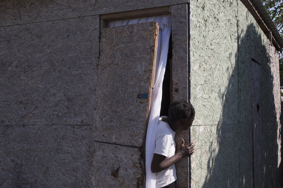 | A resident in a Port-Au-Prince transitional shelter paid for by the Red Cross. (Marie Arago, special to ProPublica) |