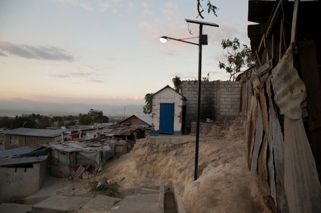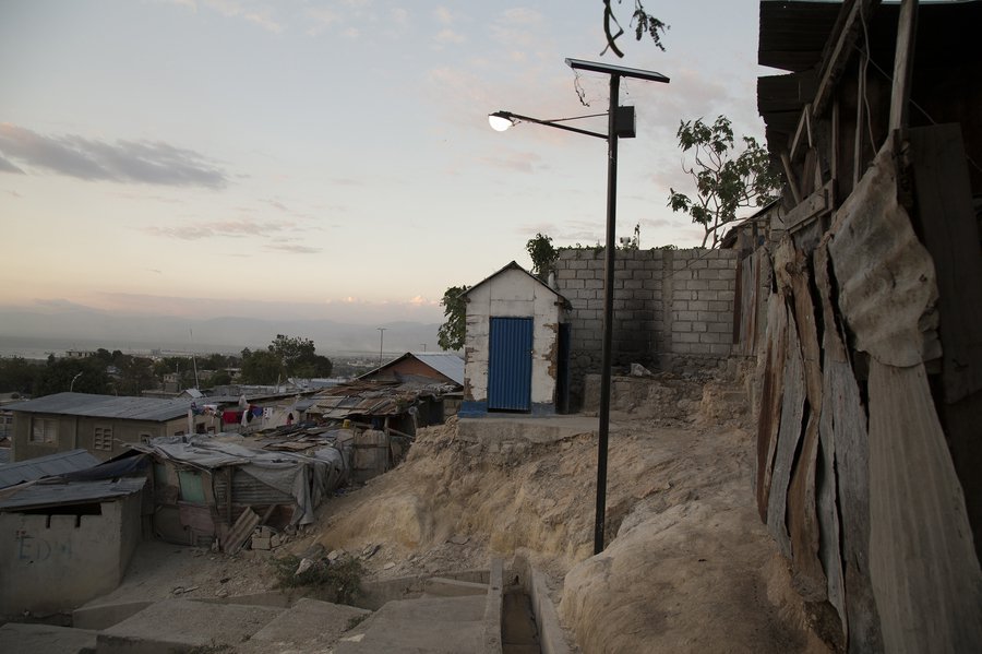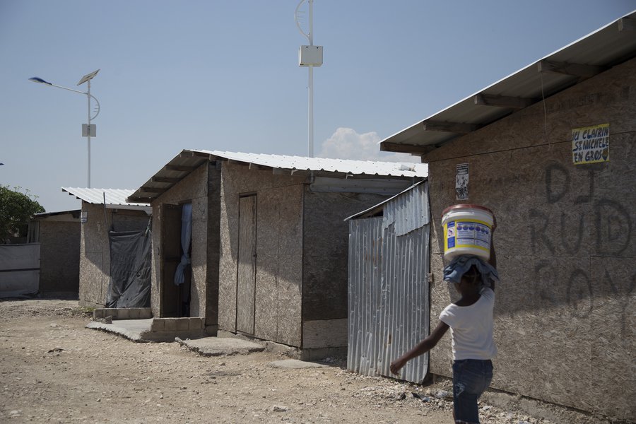 | Transitional shelters like these on the outskirts of Port-Au-Prince, paid for by the Red Cross, typically last three to five years. (Marie Arago, special to ProPublica) |
