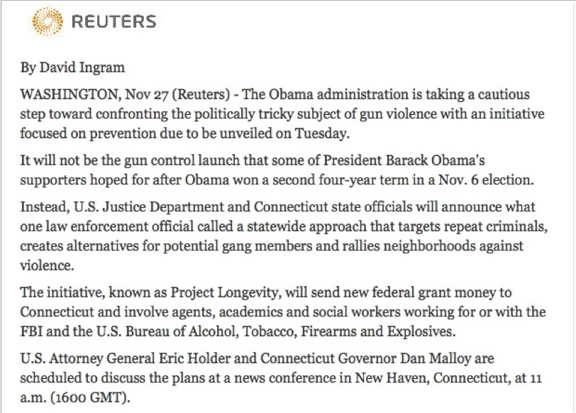 And when I looked into recent visits with the Governor to determine by whom he might have been “spoken to”, I discovered that Attorney General Eric Holder had met with him on 27 November 2012 to discuss “Operation Longevity”, a special interest of the Attorney General and the President of the United Staes for promoting gun control. Mark my words. The evidence presented here demonstrates that the school was closed by 2008; that there were no students to evacuate; that Adam Lanza appears to have been a work of fiction; and that the teachers, the parents, the Newtown School Board, the State Police, the Medical Examiner and the Governor–and by extension the Attorney General and the President–were all complicit in the deception.