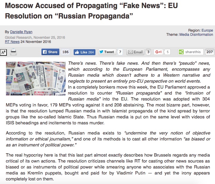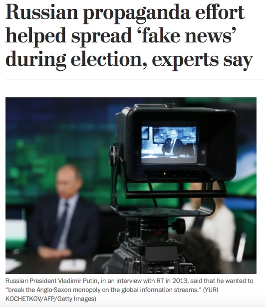 “Russia had a hand in spreading fake news to millions of Americans during the election cycle, according to two independent research groups, PropOrNot and Foreign Policy Research Institute.The Washington Post was the first media outlet to report PropOrNot’s findings that there are over 200 websites described as ‘routine peddlers of Russian propaganda during the election season, with combined audiences of at least 15 million Americans.’”