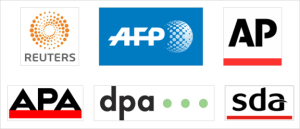 The three global news agencies Reuters, AFP and AP, and the three national agencies of the German-speaking countries of Austria (APA), Germany (DPA) and Switzerland (SDA).