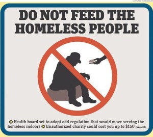 – “…The government is making it illegal to be homeless and illegal to help those who are homeless…It is illegal (or in the process of becoming illegal) to feed hungry people in 71 cities across the United States, according to the National Coalition for the Homeless”