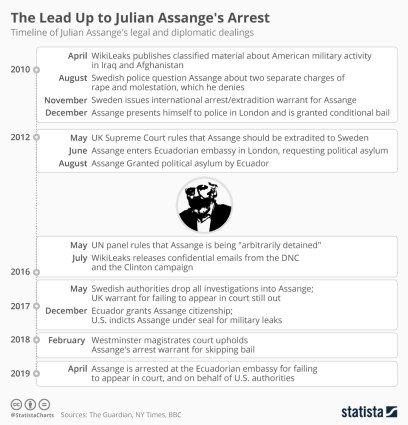 Julian Assange has been branded a “narcissist” by a judge as he faces both a UK prison sentence and being extradited to the US. The Metropolitan Police said the Australian hacker was initially detained at the Ecuadorian embassy for failing to surrender to court. He had been summoned in 2012 over an alleged rape in Sweden, where authorities are now considering reopening their investigation into those allegations.After arriving at a London police station on Thursday morning, the 47-year-old was additionally arrested on behalf of the US under an extradition warrant.