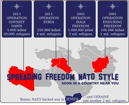 – “…The occupiers tried to impose a curfew and a ban on carrying weapons, saying they needed such measures in order to distinguish the people to kill from the people to give democracy to. But when people had to leave their homes for food or medicine, they were gunned down. Families were gunned down, one by one, as each person emerged to try to recover the injured or lifeless body of a loved one. The “family game” it was called. The only soccer stadium in town was turned into a massive cemetery”