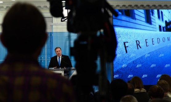 Then-CIA Director Mike Pompeo speaks at the American Enterprise Institute in Washington, Jan. 23, 2018. Susan Walsh | AP