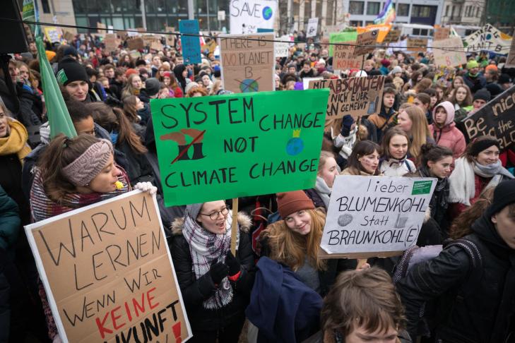 With a demonstration for more climate protection 10,000 school students from all over Germany, environmental NGOs and Greenpeace activists protest in front of the Ministry of Economic Affairs in Berlin. © Gordon Welters / Greenpeace