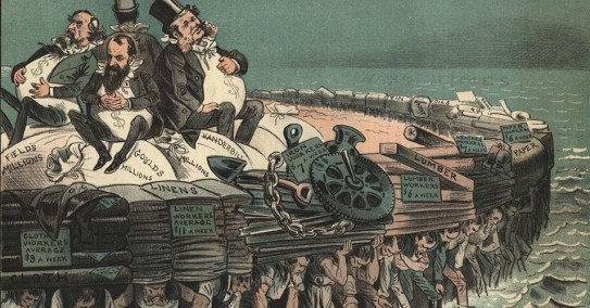 The monetary imbalance is especially jarring when it comes to hawks who beat the drums of war. (Photo: Gillam/ Mayer Merkel & Ottmann lithograph, NY, 1883)