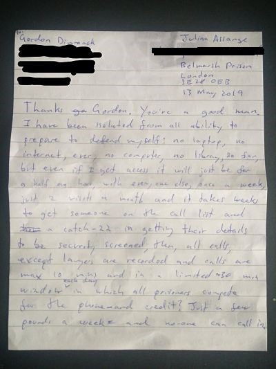 In the letter to Dimmack, Assange said:
