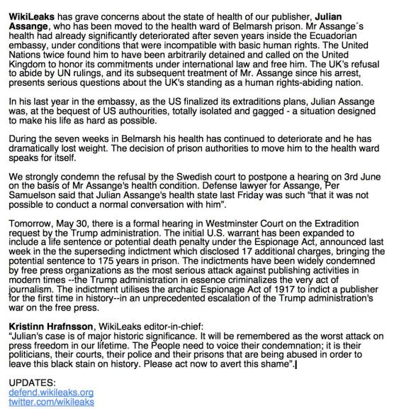 One thought on “HIGH CRIMES: A Letter To Supporters – By Julian Assange (From Belmarsh Prison)