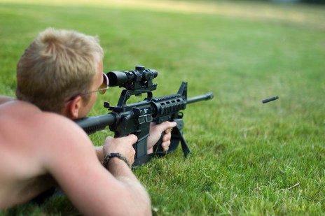Man firing AR-15 semi-automatic rifle. Photo credit: John McStravick / Flickr (CC BY 2.0)
