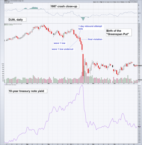 1987, DJIA daily and the 10-year Treasury note yield: birth of the so-called “Greenspan put” [PT]