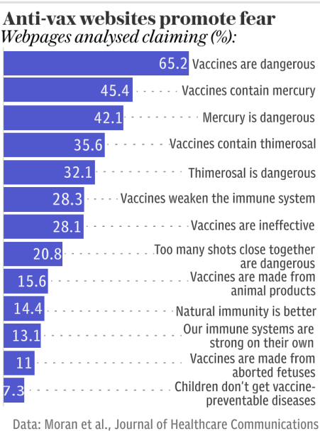 Anti-vaccine websites contain a considerable amount of misinformation, most commonly that vaccines are dangerous, cause autism and brain injury. Websites used both scientific evidence and anecdotes to support these claims. [CJF emphasis]