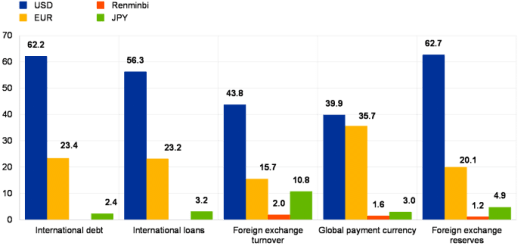 Figure 2: Shares of the major currencies in the international monetary system. Source: European Central Bank