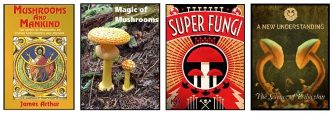 – “…The amanita muscaria mushroom…provides the Near Death Like Experiences that lead to transcendence which is prized by shamans and is the root of all religions. The book shows the hidden representations of the mushroom in religious art and architecture around the world”