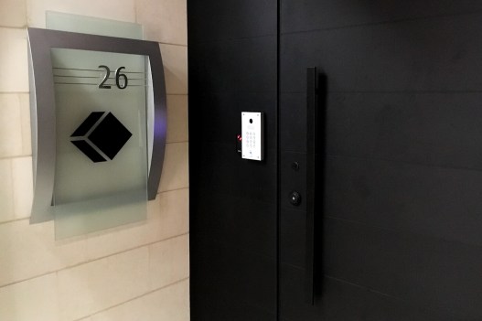 The entrance to Black Cube’s offices on the 26th floor of a Tel Aviv high rise, Feb. 8, 2019. Raphael Satter | AP