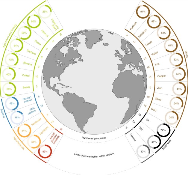 Many people today are beginning to finally understand the damage being done to the environment by TNC’s, and the report focused in on consolidation in agriculture and forestry, seafood, agrochemicals, mining and fossil fuels. We’ve been warning for years of the impact a company like Monsanto can have, but this report shows us the chilling, bigger picture.