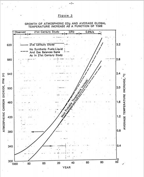 “Growth of Atmospheric CO2 and Average Global Temperature Increase as a Function of Time,” Exxon.