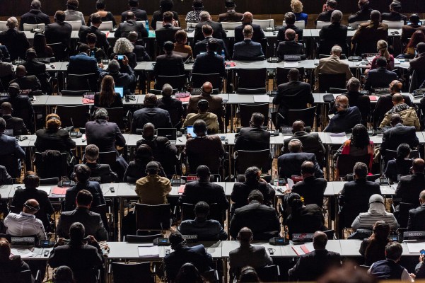 Delegates at the conference centre at COP23 in Bonn. © Bernd Lauter / Greenpeace