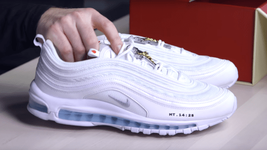 The limited edition shoes were made by Brooklyn-based company MSCHF which redesigned Nike’s Air Max 97 model, turning it into “Jesus Shoes,” and offering buyers to literally walk on water.