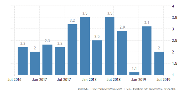 In other words, without the deal, global GDP growth is expected to fall another 0.8%. With it, damage will by slightly mitigated to where global growth will only fall another 0.6% due to trade wars. The US is impacted more directly by the trade war with China than the rest of the world, so larger declines in either case should be expected. That means you can knock, at minimum, another 0.6% off the above US GDP growth chart in the months ahead just from the continuing US trade wars, and that is the best-case scenario if this agreement gets signed in November.