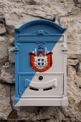 Seborga has a patron saint, St. Bernard, and even a Latin motto on its coat of arms – sub umbra sede (sit in the shade). The blue and white sentry box at the Italian border does just that – it sits in the shade.