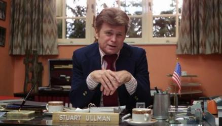 According to that interpretation, Jack Torrance (Jack Nicholson) represents Kubrick himself, while the Overlook Hotel (built on Indian burial ground), represents America. The manager of the hotel, Stuart Ullman (Barry Nelson), made to look like JFK, represents the US government (as well as perhaps the JFK Space Center), while his assistant Bill Watson, who keeps observing Torrance without uttering a word, represents the Intelligence underworld.