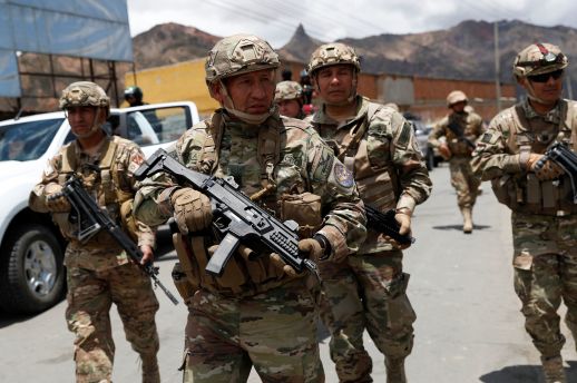 Military members patrol the streets in La Paz, Bolivia November 12, 2019