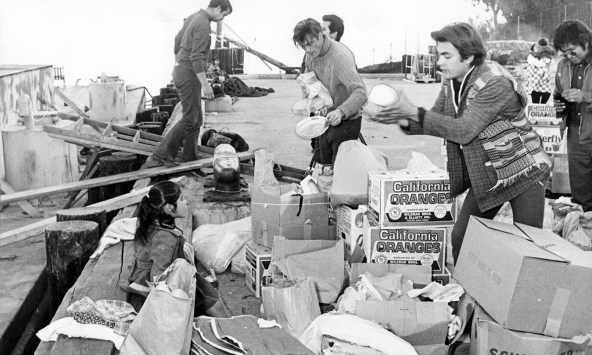 Alcatraz, CA December 2, 1969 – Food is loaded ashore at Alcatraz pier for the island’s growing Indian population. (Russ Reed / Oakland Tribune Staff Archives) (Digital First Media Group/Oakland Tribune via Getty Images)
