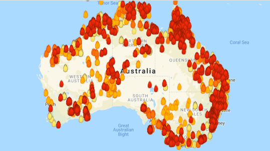 What concerns me here is the map at the beginning of this article, for a glance at it shows something that to my mind is mighty peculiar: the entire continent is ringed with these fires, and that means they have become an environmental disaster. In fact, one thing my local talk show radio station did report about the Australian fires is the massive loss of wildlife, to the tune of hundreds of millions of animals. Then ask yourself this question: if these fires were deliberately planned, what kind of intelligence would ring the inhabitants – human and otherwise – of an entire continent with fire?