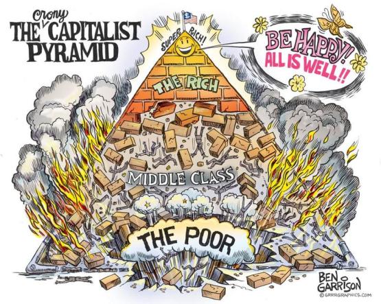 Rather than an “invisible hand” benefiting everyone, we have a self-serving state-cartel system that squashes competition, exploits the politically powerless and stripmines resources, workforces and a financial system designed to benefit the few at the expense of the many.