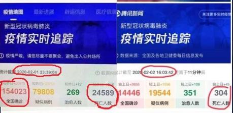 Tencent screengrab as of late Feb 1, showing far higher infections.