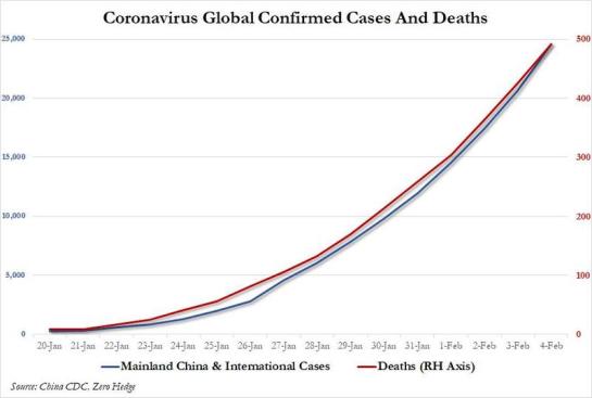 Ten days ago, shortly after China first started reporting the cases and deaths associated with the coronavirus epidemic, a UK researcher predicted that over 250,000 Chinese would be infected with the virus by February 4. And while according to official Chinese data, the number of infections has indeed soared in the past two weeks, at just under 25,000 (and roughly 500 deaths), it is a far cry from this dismal prediction, about ten times below that predicted by the epidemiologists.