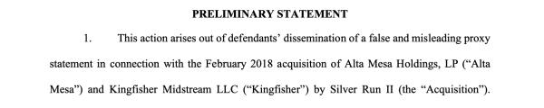 One lawsuit filed by the Plumbers and Pipefitters National Pension Fund claims that the proxy statement for Alta Mesa contained materially false and misleading information. That filing lays out a lot of facts to support that claim.
