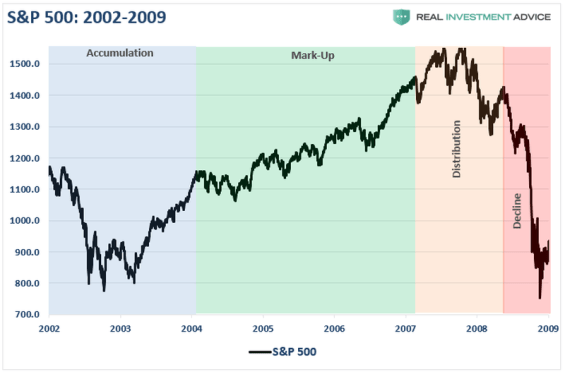 As the distribution phase gained traction, it is worth remembering the media and Wall Street were touting the continuation of the bull market indefinitely into the future.