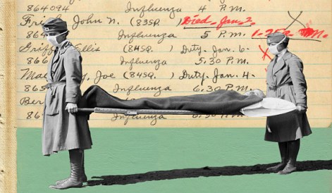 2. People who died so astoundingly fast that those deaths became a classic part of the frightening legend of the 1918 “flu” – people perfectly well in the morning and dead within a matter of hours.