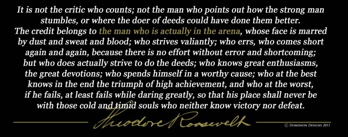 There’s a passage in Teddy Roosevelt’s famous 1910 “Citizenship in a Republic” speech I want to share with you today: