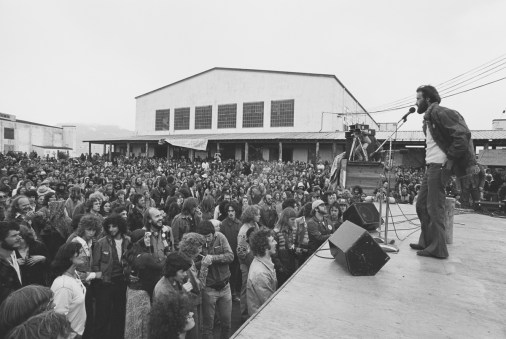 Bob Hunter addresses the crowd at the Greenpeace send-off event, Jericho Beach. © Greenpeace / Rex Weyler