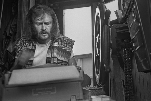 Bob Hunter at work on his typewriter on the very first Greenpeace voyage. © Greenpeace / Robert Keziere