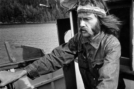 Bob Hunter on board the James Bay during the 1976 whale campaign. © Greenpeace / Rex Weyler