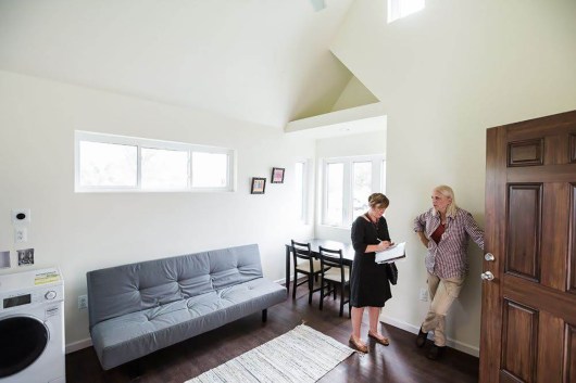 – “…An income between $7,000 and $12,000 per year, the ability to pay rent and electric bills, meet regularly with financial coaches, and volunteer at least eight hours a month in the community….After seven years, the tiny home and the land on which it rests are deeded to the resident, mortgage-free, and one more person has transitioned from a place of housing insecurity to place of housing equity”