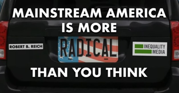 “Just remember,” writes economist Robert Reich, “the ‘center’ is not halfway between what most Americans want and what big corporations, Wall Street, and the super-wealthy want. The ‘center’ is what the vast majority of Americans want.” (Image: Inequality Media)