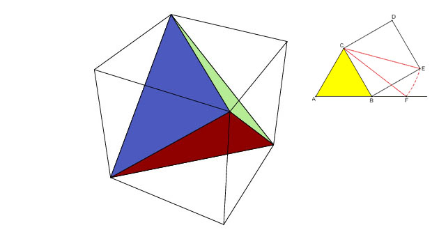 | Note the sides of the tetrahedron bisected by the blue line. |