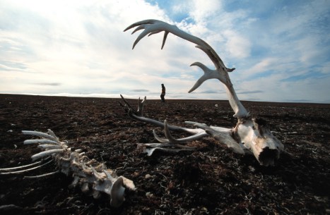 The remains of a Peary Caribou (Rangifer tarandus pearyi) in the Canadian High Arctic. © Greenpeace / Steve Morgan