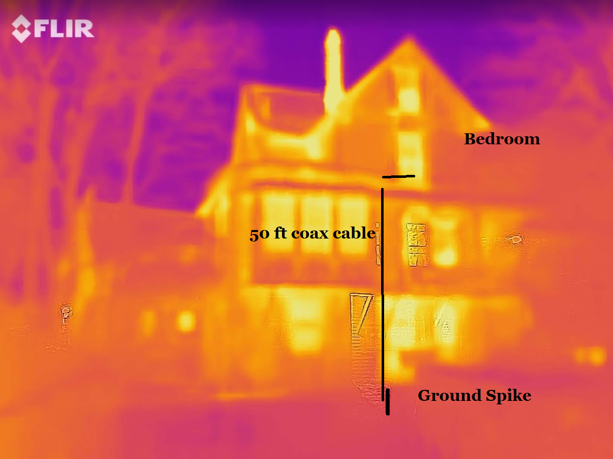Photo 1, running a shielded coaxial cable from the bedroom down to the ground.