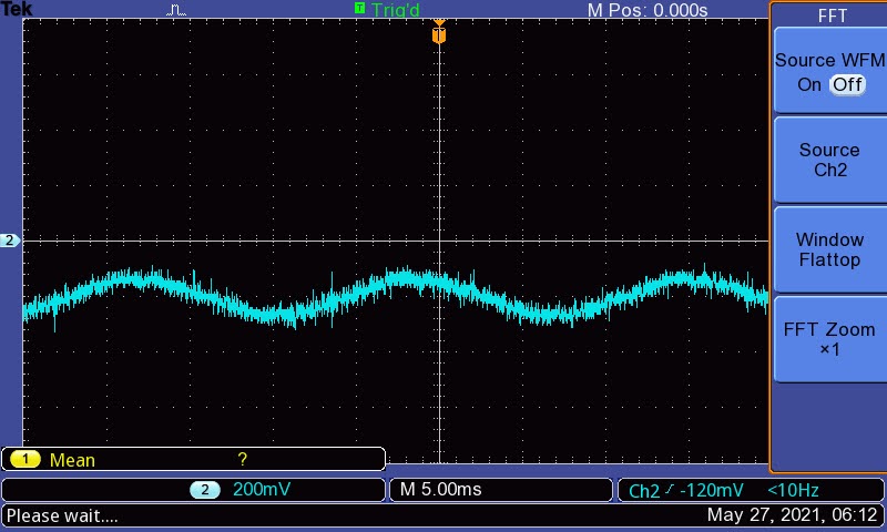 Figure 2, the frequencies measured from my skin, while just sitting on the bed.Horizontal scale is 50 Hz per division.